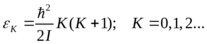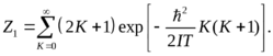 Здесь I – момент инерции молекулы, K – вращательное квантовое число. Вращательные уровни вырождены (2K + 1) раз. Вращательная статистическая сумма для одной молекулы имеет вид