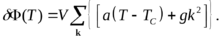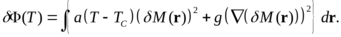 Здесь величина b > 0 берется в критической точке (при b < 0 потенциал не имеет минимума при больших значениях намагниченности). Значение А = 0 в критической точке. Разлагая ее в ряд Тейлора, получим