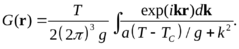 называется корреляционным радиусом флуктуаций. Эта величина в соответствии в (9) определяет порядок величины расстояний, на которых корреляция существенно убывает. Видно, что корреляционный радиус возрастает при приближении к критической точке. В самой критической точке корреляционная функция имеет вид