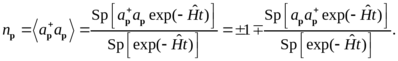Задача 18. Используя операторы рождения и уничтожения в представлении Мацубары, получить равновесные распределения Ферми и Бозе в идеальных газах.