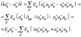 Далее все операции сложения и вычитания, относящиеся к ферми-газу, отмечаем верхним знаком, а к бозе-газу – нижним. Вычислим коммутатор