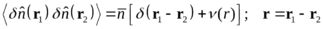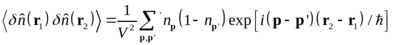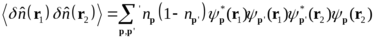 Для вычисления коррелятора флуктуации плотности перемножаем два выражения типа (2), относящиеся соответственно к координатам