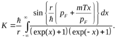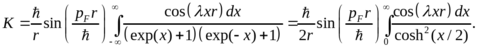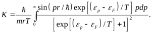 Последнее упрощение связано с тем, что малых температурах существенно интегрирование только вблизи значений энергии, близких к энергии Ферми. По этой же причине интегрирование по x можно распространить на весь интервал