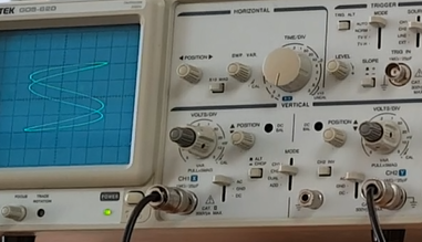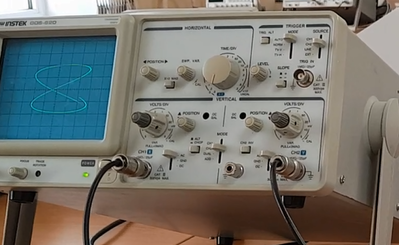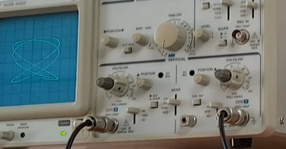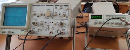 Выключим внутреннюю развертку осциллографа. Подадим на вход Х и Y от двух разных генераторов. Амплитуды колебаний и положение ручки V/ДЕЛ выберем такими, чтобы фигура заняла большую часть экрана. Установим частоту