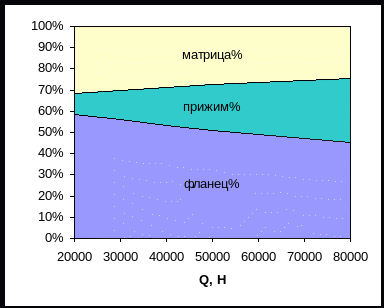 В ячейках A13:H19 подготовить данные для построения графика степени влияния различных слагаемых в формуле (1) на величину максимального напряжения в опасном сечении при изменении силы прижима в диапазона 10000…80000 Н с шагом 10000Н. Указания: