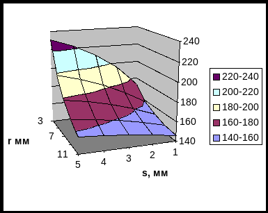 Построить пространственный график влияния толщины заготовки и радиуса кромки матрицы на величину напряжения в опасном сечении, для чего выполнить следующие подготовительные действия: