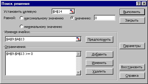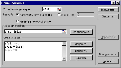 Нажать кнопку Выполнить и после окончания процесса поиска решения, который может продлиться несколько секунд, нажать кнопку ОК в окне Результаты поиска решения.