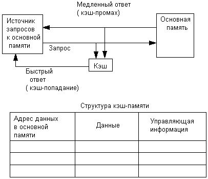 Cache - это способ совместного функционирования двух типов запоминающих устройств, отличающихся временем доступа и стоимостью хранения данных, который позволяет уменьшить среднее время доступа к данным и экономить более дорогую быстродействующую память за счет динамического копирования в "быстрое" ЗУ (Кэш-память) наиболее часто используемой информации из "медленного" ЗУ.