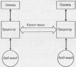 Мультипроцессорные системы со слабо связанными процессорами (многомашинные комплексы) предусматривают соединение двух или более независимых вычислительных машин при помощи канала связи (рис. 11.9). При этом каждая машина имеет свою собственную