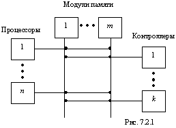 Мультипроцессорные системы, построенные по принципу осуществления связей между модулями посредством "прямоугольной решетки" соединительных шин, которые могут контактировать в любой точке их пересечения, называют системами с перекрестной коммутацией (рис 2.1).