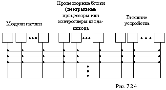 В МПВК с перекрестной коммутацией нет конфликтов из-за связей, остаются только конфликты из-за ресурсов. Возможность одновременной связи нескольких пар устройств позволяет добиваться очень высокой производительности комплекса. Важно отметить и такое обстоятельство, как возможность установления связи между устройствами на любое, даже на длительное время, так как это совершенно не мешает работе других устройств, зато позволяет передавать любые массивы информации с высокой скоростью, что также способствует повышению производительности комплекса. Заметим, что в МПВК с общей шиной передача информации массивами, т.е, занятие шины одной парой устройств на длительный отрезок времени, обычно допускается лишь в крайних случаях, так как это приводит к длительным простоям остальных устройств.