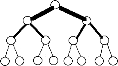 Другой подход к решению той же проблемы прдоставляет „толстое дерево“ (рис. ). Это прямой способ решения, при котором связи поддеревьев более высокого уровня обладают более высокой производительностью.