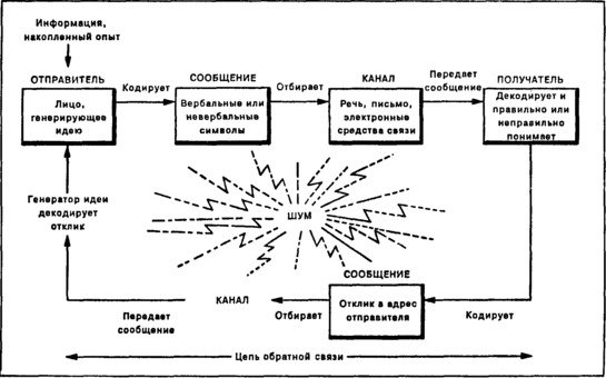 ШУМ. Обратная связь заметно повышает шансы на эффективный обмен информацией, позволяя обеим сторонам подавлять шум. На языке теории передачи информации шумом называют то, что искажает смысл. Источники шума, которые могут создавать преграды на пути обмена информацией, варьируют от языка (в вербальном или невербальном оформлении) до различий в восприятии, из-за которых может изменяться смысл в процессах кодирования и декодирования, и до различий в организационном статусе между руководителем и подчиненным, которые могут затруднять точную передачу информации.