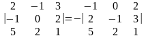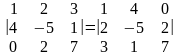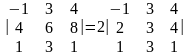 Здесь определитель не изменился, когда к элементам второй строки прибавили соответствующие элементы первой строки, умноженные на 2 (см. свойство 8); -