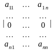 Пусть матрица А содержит i – тую нулевую строку. Тогда каждое слагаемое, входящее в определитель detA, содержит в качестве множителя число 0 ( как элемент i – той строки ). Отсюда detA=0. ▲