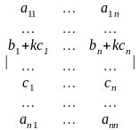 Свойство 8. Определитель матрицы не изменится, если к элементам одной из строк прибавить элементы другой строки, умноженные на некоторое число k: