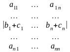 Свойство 9. Если одна из строк матрицы является линейной комбинацией других её строк, то определитель такой матрицы равен нулю.