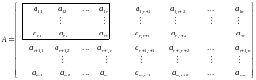 Пусть для определенности базисный минор ( ненулевой минор порядка r ) расположен в верхнем левом углу матрицы А. Если это не так, переместим базисный минор в верхний левый угол, переставляя строки и столбцы матрицы (очевидно, что ранг матрицы А при таких преобразований матрицы не изменится).