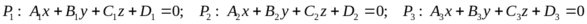 2) Плоскости пересекаются по трем параллельным прямым. В этом случае векторы нормалей должны быть компланарны, но система уравнений, состоящая из общих уравнений плоскостей, должна быть несовместна: