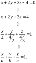 Уравнение (4) называется уравнением плоскости «в отрезках». Отметим, что