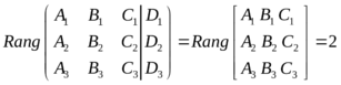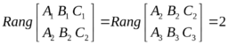 4) Три плоскости пересекаются вдоль прямой. В этом случае система, составленная из общих уравнений плоскостей, должна быть совместна, ранг матрицы системы должен быть равен 2. Отсюда получаем: