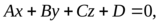 Перепишем уравнение (1) в другом виде, получим общее уравнение плоскости (2):