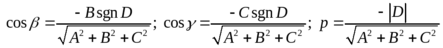 направляющие косинусы вектора нормали, p
