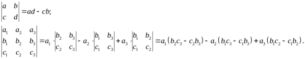 Прежде чем дать формулы для вычисления произведений векторов в координатной форме, введем понятие определителей второго и третьего порядков: