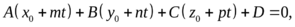 Используя полученные сведения о прямой и плоскости, можно без труда решать различные задачи аналитической геометрии. Решим, например, задачу о нахождении точки пересечения прямой (5) и плоскости (2). Подставляя равенства (5) в уравнение (2), получим уравнение