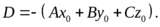 т.е. равно по модулю результату подстановки координат точки