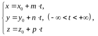 Прямой в пространстве называют линию пересечения двух непараллельных плоскостей. Значит, прямая в пространстве задается системой уравнений