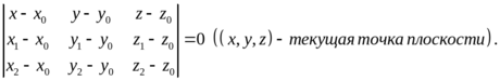 Уравнение плоскости, проходящей через три заданные точки