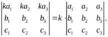 4) Определитель, у которого элементы одной строки (или столбца) пропорциональны элементам другой строки (или столбца ) равен нулю.