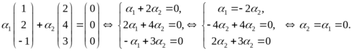 не равные нулю одновременно, такие, что имеет место равенство