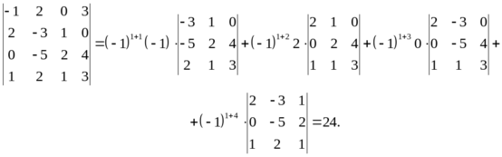 порядка вычисляется по формуле (1). Ранее было даны правила вычисления определителей второго и третьего порядков, поэтому по формуле (1) можно вычислить определители четвертого порядка и выше. Например,