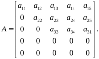 Ясно, что диагональная, верхне-треугольная и трапециевидная матрицы являются ступенчатыми. Другой пример матрицы ступенчатого вида: