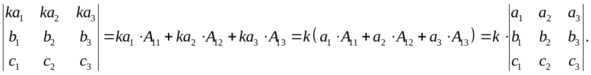 5) Общий множитель элементов любой строки (или столбца) можно выносить за знак определителя :