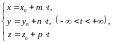Используя полученные сведения о прямой и плоскости, можно без труда решать различные задачи аналитической геометрии. Решим, например, задачу о нахождении точки пересечения прямой (5) и плоскости (2). Подставляя равенства (5) в уравнение (2), получим уравнение