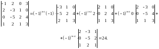 порядка вычисляется по формуле (1). Ранее было даны правила вычисления определителей второго и третьего порядков, поэтому по формуле (1) можно вычислить определители четвертого порядка и выше. Например,