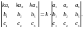 4) Определитель, у которого элементы одной строки (или столбца) пропорциональны элементам другой строки (или столбца ) равен нулю.