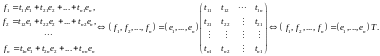 Разложим “новые” базисные вектора в линейные комбинации “старых” базисных векторов: