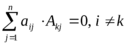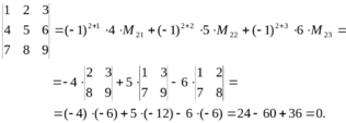 Сумма произведений элементов любой строки на алгебраические дополнения другой строки равна нулю: