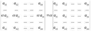 Если все элементы строки определителя умножить на отличное от нуля число, то определитель умножается на это число: