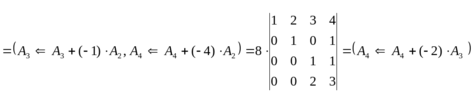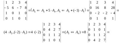 Перечисленные свойства позволяют упростить вычисление определителя.