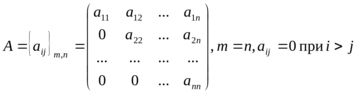, квадратная матрица, у которой все элементы, расположенные ниже диагонали — нули;
