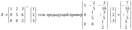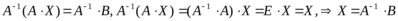 A·X = B. Ясно, что по этой формуле можно вычислить решение системы n линейных алгебраических уравнений относительно n неизвестных (см. запись системы в матричной форме).