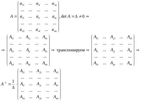 (транспонировали матрицу из алгебраических дополнений) справедливо: