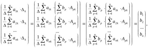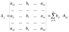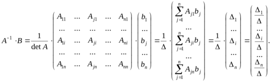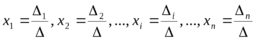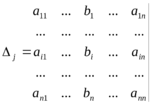 — определитель матрицы, полученной из матрицы системы заменой j-го столбца столбцом правых частей.