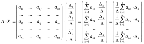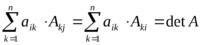 — сумма произведений элементов i-й строки матрицы A на их алгебраические дополнения. Если же Если
