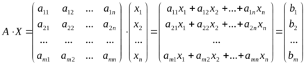 тогда и только тогда, когда для элементов матрицы X справедливы равенства рассмотренной системы. Т.е. система эквивалентна матричному уравнению A·X = B, в том смысле, что если числа